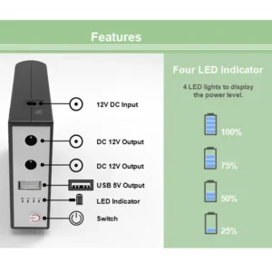 - ১০৪০০mAh ব্যাটারি ক্ষমতা: দীর্ঘ সময় রাউটার বা অন্যান্য ডিভাইস সচল রাখে।
